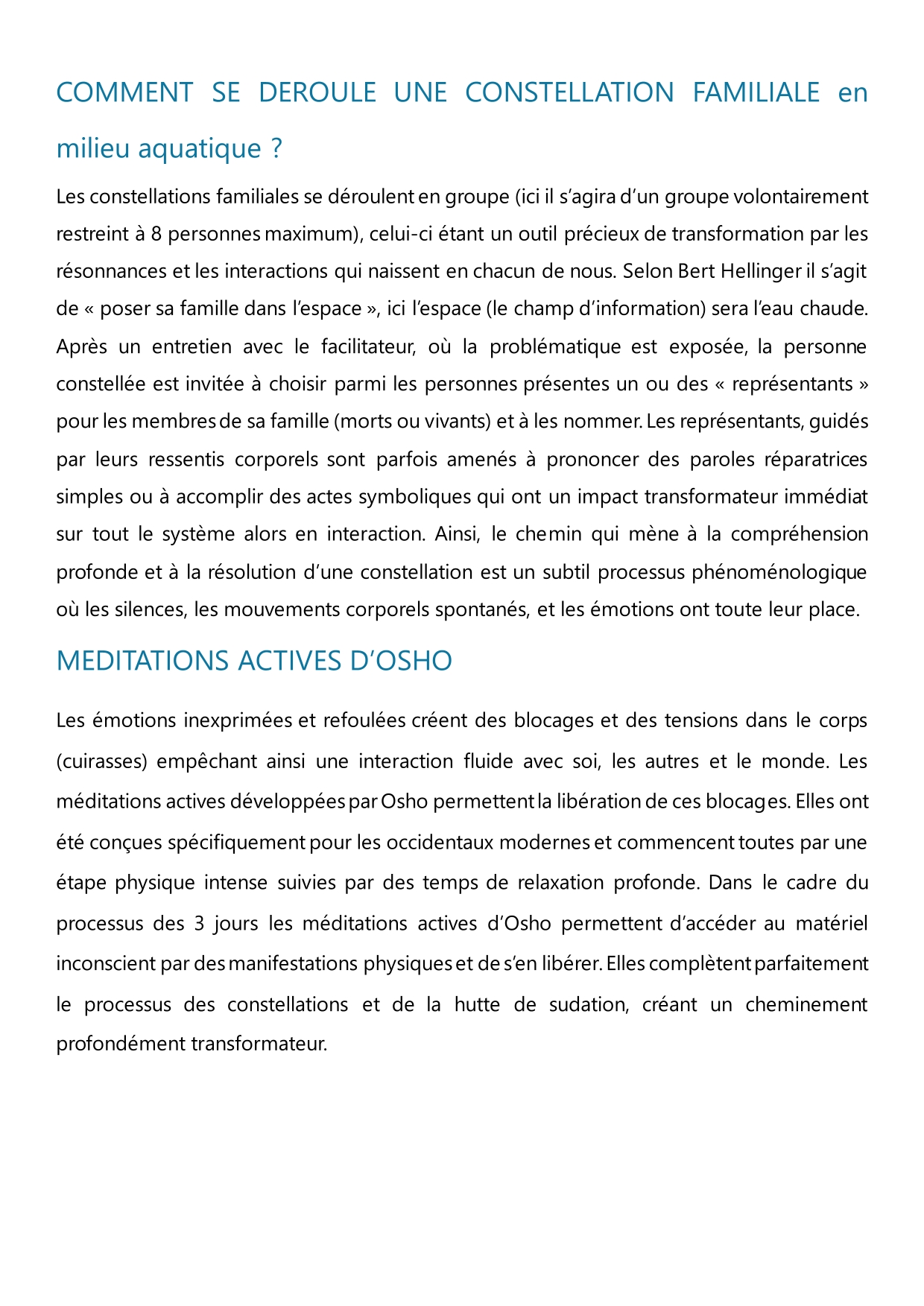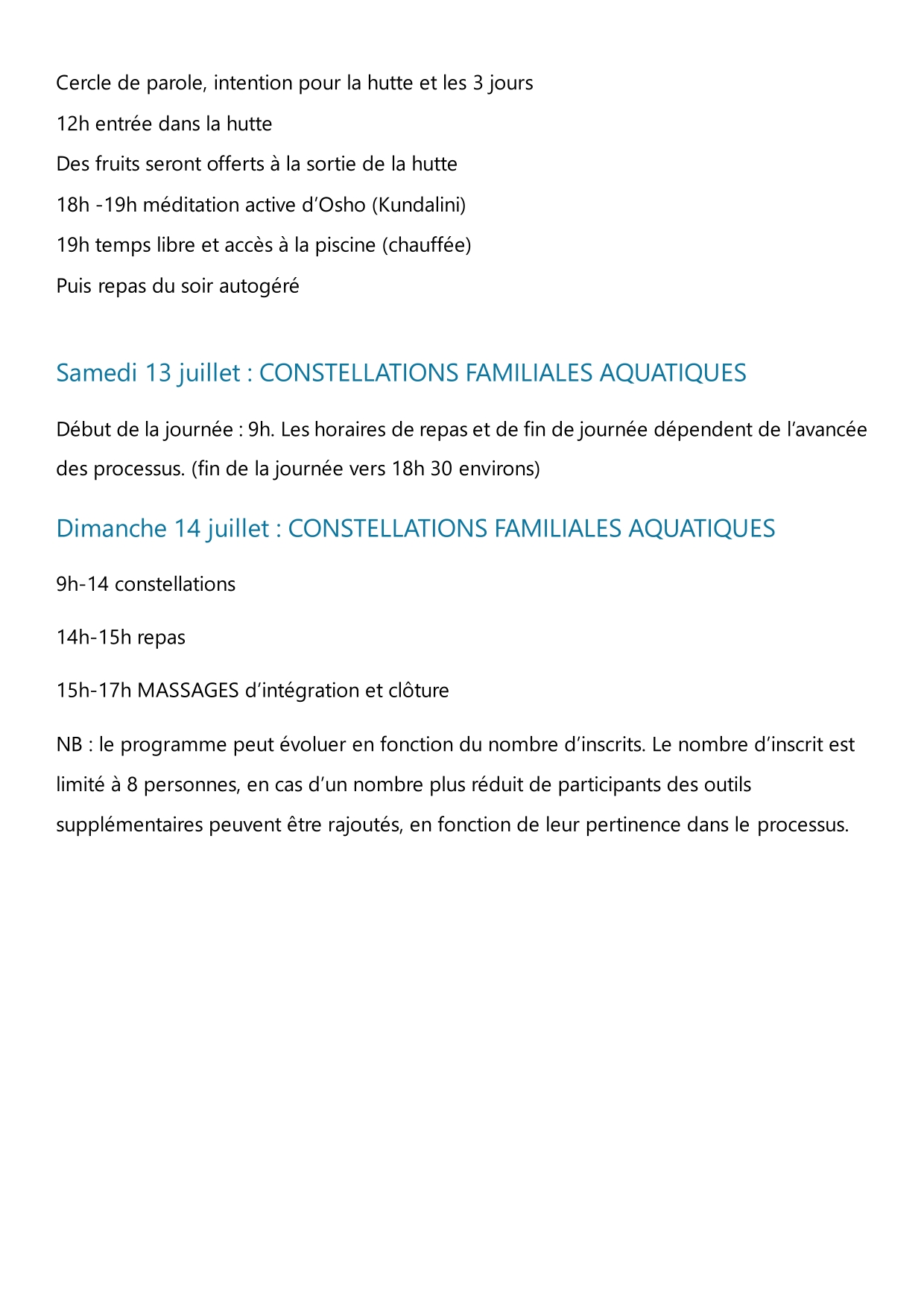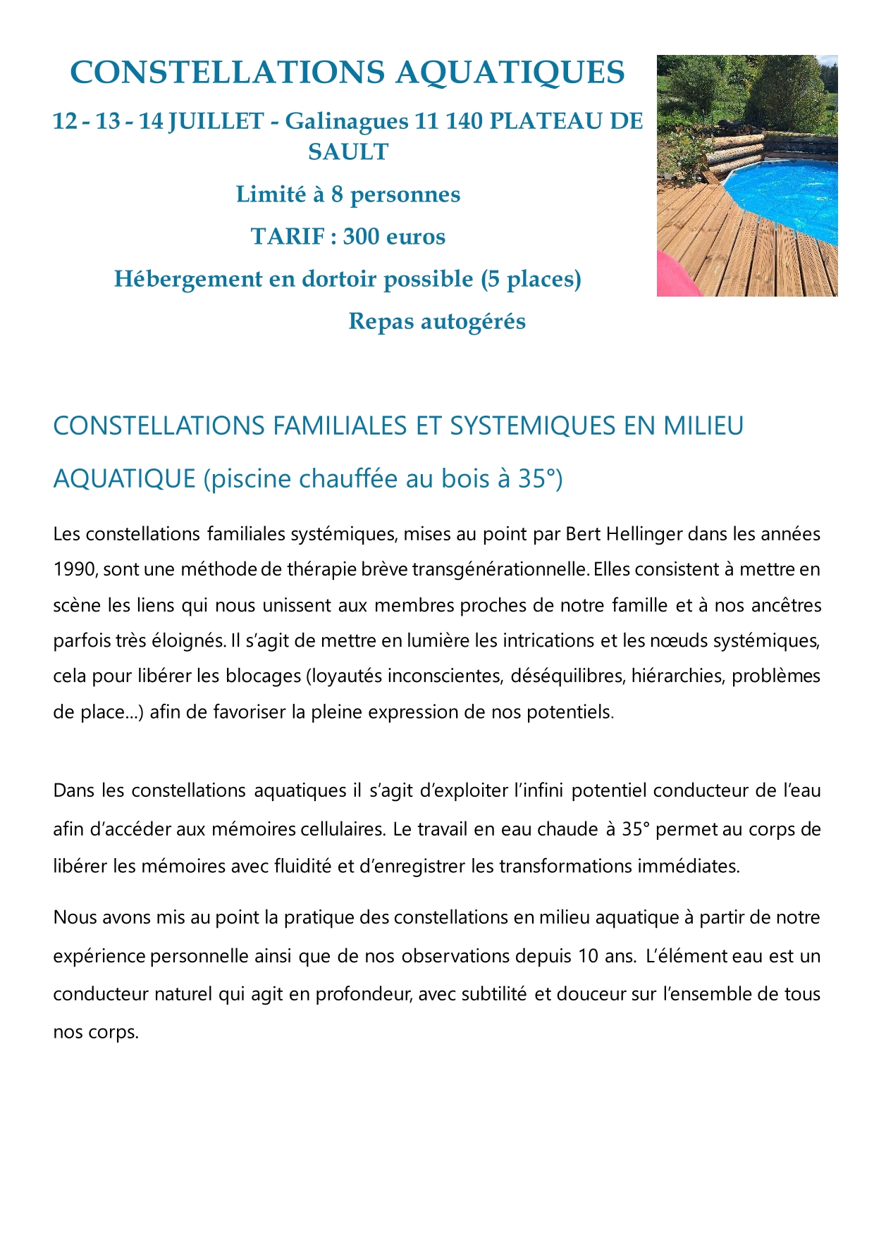 Constellations familiales en eau chaude à 35 degrés (eau chauffée au bois )