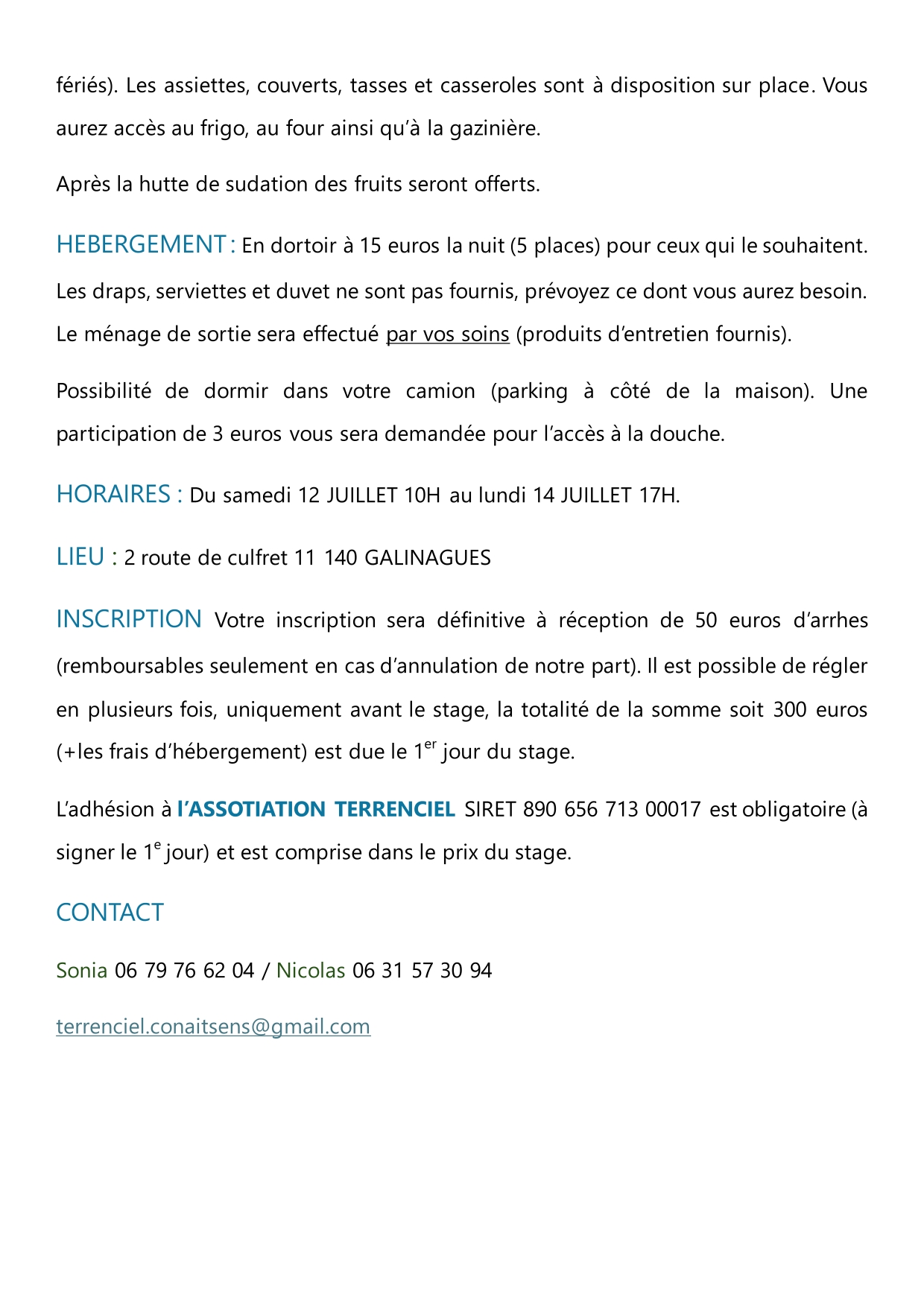 Possibilité d hébergement en dortoir