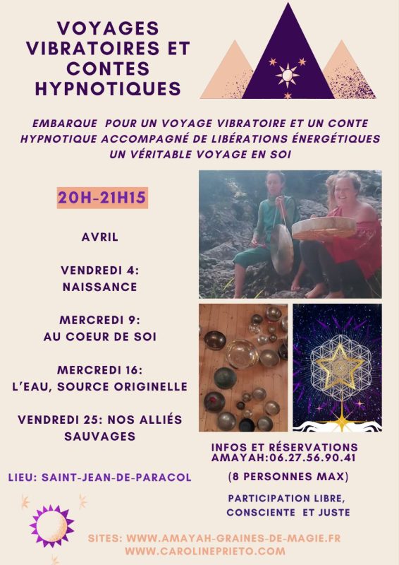 Voyages vibratoires et contes hypnotiques, le 25 avril à St Jean de Paracol de admin | 25 avril, 2015 - 20h14 |26 avril, 2025 Archives Pensez à réserver si vous voulez découvrir et partagez a qui vous le souhaitez 🙏🏼🧚🏼♂️ Veuillez laisser ce champ vide Inscrivez-vous pour recevoir la lettre hebdomadaire(envoi chaque début de semaine)des infos en Haute Vallée de l'Aude Vérifiez votre boite de réception ou votre répertoire d’indésirables pour confirmer votre abonnement. Pour marque-pages : Permalien.