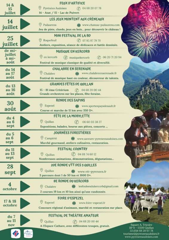 Retrouvez toutes les animations du territoire des Pyrénées Audoises également sur notre agenda en ligne.
