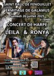 Les harpistes Ronya et Leila Zitouni, accompagnées de leur harpe celtique et de leur voix, vous régaleront les oreilles et bien plus encore dans la finesse et la douceur. Avec grâce, elles nous mèneront de la poésie occidentale à l’orientale et rendront grâce la Sainte Vierge . Le samedi 26 juillet 2025 à 18 h à l’ermitage de Galamus à St Paul de Fenouillet. Réservation sur HelloAsso : 10€ https://www.helloasso.com/associations/nashuar-terre-vivante/evenements/concert-de-leila-et-ronya-a-l-ermitage-du-galamus ou sur place 12€ Renseignements 0683359411 https://www.nashuarterrevivante.fr Les bénéfices de ce concert iront pour l’association ASTB (Sclérose Tubéreuse de Bourneville)