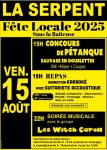Fête de la Serpent organisée par le comité des fêtes du village Le 15 août 2025 à LA BATTEUSE à partir de 15 h pour le concours de pétanque sauvage en doublettes. 19 h le repas avec animation karaöké et guitare acoustique. 22h soirée musicale avec les witch Caroll 20€ le repas. salade composée, charcuterie, Paella ,fromage, glaces. Vin et café. Inscription avant le 12 août : Gérard Sansoz 04 68 31 75 52 b.castel@sbxinfo.fr N’hésitez pas à me contacter si vous avez besoin d’informations complémentaires. Cordialement. Myriam Tulipier ( présidente du CDF La Serpent)