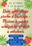 Maison à garder à partir du 25 mars à La Serpent