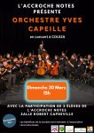 Bonjour L’Accroche Notes, école de musique associative Couiza/Espéraza vous invite Dimanche 30 Mars 2025 à 15h Salle Robert Capdeville 11190 COUIZA CONCERT de L’orchestre à cordes Yves CAPEILLE Avec la participation de 3 élèves de l’école de musique Dargère Ayni à la flûte traversière Folch Cazcarra Chloé au chant Monnerville Kara au Piano. En espérant partager ce moment avec vous. A bientôt Christine Martinez