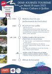 Bonjour. Pour la seconde année consécutive, la Communauté de Communes des Pyrénées Audoises organise une journée tourisme le mardi 18 mars prochain à l’espace cathare à Quillan. Au programme de cette journée : – bourse d’échange de documentations entre prestataires touristiques ; – activités à faire sur le territoire ;- tables rondes : accompagnement taxe de séjour, conseils personnalisés sur la présence numérique, inscription dans la démarche accueil véloespace ; – emploi tourisme : les structures participantes peuvent nous envoyer avant le jeudi 13 mars, leurs offres d’emploi à l’office de tourisme afin d’être relayées lors de la journée tourisme ; – activités : sortie VTT enduro au lac de Quillan, initiation à la pêche, balade en calèche, discgolf. !! Attention: nombre de place limité pour la sortie VTT à réserver dès maintenant auprès de l’office de tourisme au 04 68 20 07 78. Nous vous attendons dès 13h30 pour venir découvrir que faire sur ce beau territoire desLire la suite … Lire la suite …