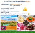 parcours Gastronomique Vivant ! : étape du jeudi 16 octobre 🌴 💥 Demain prend racine aujourd’hui… » Oui je sais bien mais je n’y arrive pas tout(e) seul(e) !! » 😕 Alors comme pour un voyage, Myriam et Cécile proposent un accueil original et sur mesure pour nous embarquer ensemble dans de nouvelles HABITUDES ALIMENTAIRES. Ensemble : Jeudi 16 Octobre de 13h à 16h puis jeudi 23 octobre Demain prend racine aujourd’hui ! Nous allons donc nourrir notre terrain, de bons aliments et de belles relations. Du sur-mesure pour chacun, soutenu par une dynamique d’’intelligence collective. Cela comprend des cours, des ateliers, des dégustations, des animations, des partages…. CURIOSITÉ – DÉCOUVERTE – SURPRISES – CRÉATIVITÉ Et si le cœur vous en dit, merci de bien vouloir aussi diffuser svp cette proposition à vos amis, vos voisins, votre famille, car… plus nous inclurons notre cercle proche à cetteLire la suite … Lire la suite …
