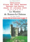 Jeudi 23 octobre 2025 de 10 h 30 à 12 h sur le stand de la Librairie La Rose Rouge au marché de Rennes-les-Bains : Séance de dédicaces avec Jean-Michel Jauly, auteur de l’ouvrage « Le mystère de Rennes-le-Château, une autre histoire ». L’ouvrage peut également être commandé sur le site à l’adresse suivante : www.librairielaroserouge.fr/boutique/r%C3%A9gionalisme-1/rennes-le-chateau/le-myst%C3%A8re-de-rennes-le-ch%C3%A2teau,-une-autre-histoire-detail.html