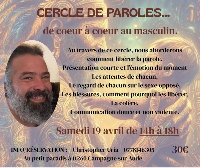 Cercle de paroles au masculin – Samedi 19 avril à Campagne sur Aude