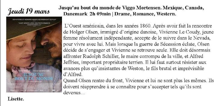 Ciné-club au cinéma Familia de Quillan jeudi 19 mars de admin | 19 mars, 2016 - 20h28 |20 mars, 2026 Archives Veuillez laisser ce champ vide Inscrivez-vous pour recevoir la lettre hebdomadaire(envoi chaque début de semaine)des infos en Haute Vallée de l'Aude Vérifiez votre boite de réception ou votre répertoire d’indésirables pour confirmer votre abonnement. Pour marque-pages : Permalien.