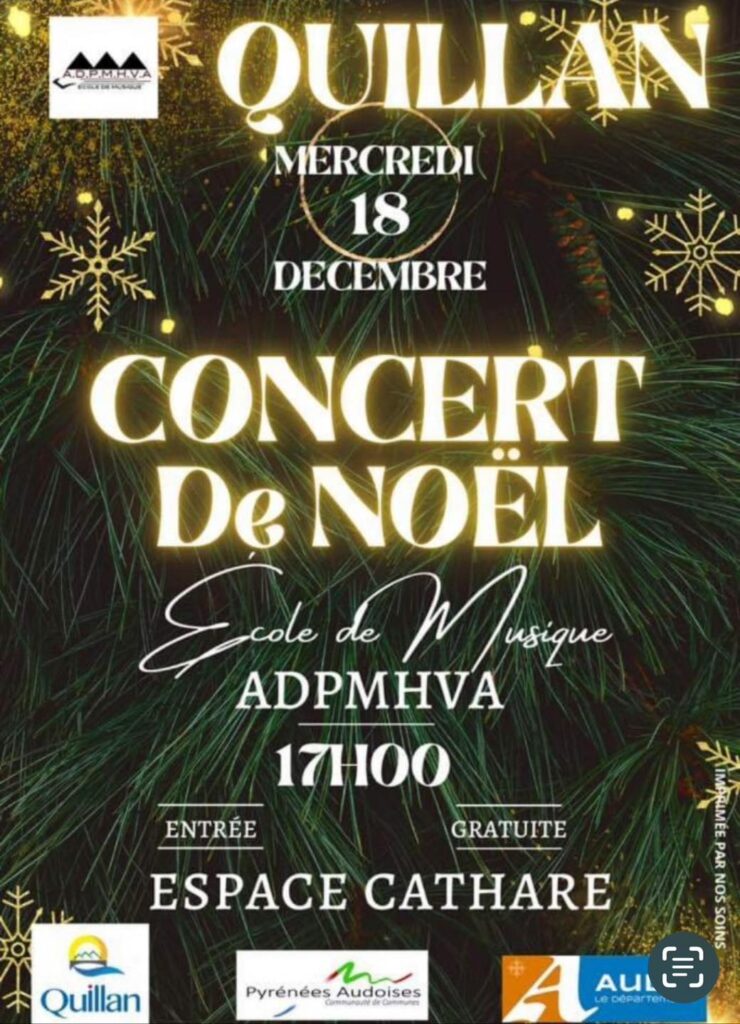 Concert de Noël à Quillan le 18 décembre de admin | 18 décembre, 2014 - 12h18 |24 décembre, 2024 Archives Veuillez laisser ce champ vide Inscrivez-vous pour recevoir la lettre hebdomadaire(envoi chaque début de semaine)des infos en Haute Vallée de l'Aude Vérifiez votre boite de réception ou votre répertoire d’indésirables pour confirmer votre abonnement. Pour marque-pages : Permalien.