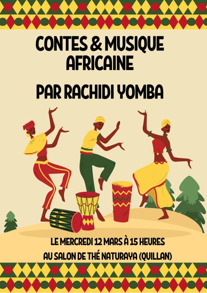 Retrouvez-nous mercredi 12 mars à 15h00 à Naturaya – Salon de thé vegan & sans gluten pour une après-midi contes et musique Africaine proposée par Rachidi Yomba.
