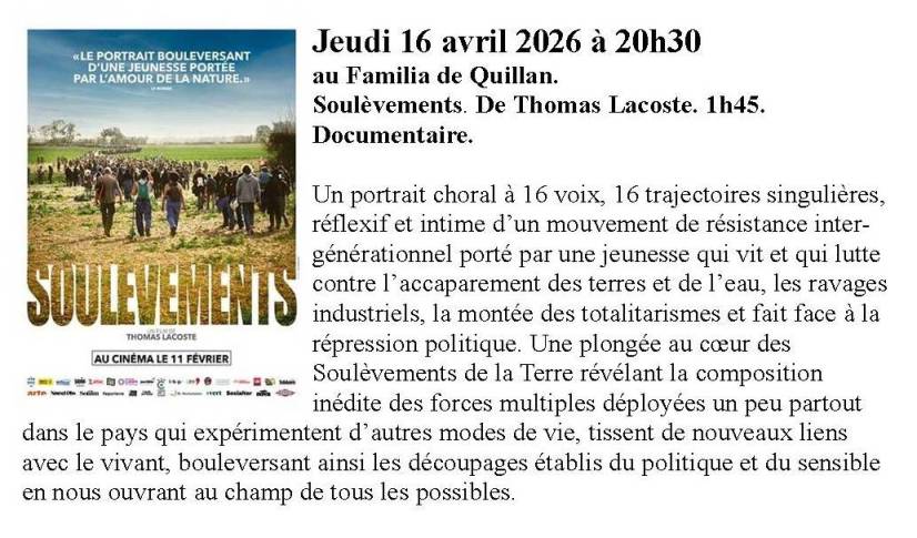 Film « Soulèvements » au Familia à Quillan le 16 avril de admin | 16 avril, 2016 - 22h39 |20 avril, 2026 Archives Veuillez laisser ce champ vide Inscrivez-vous pour recevoir la lettre hebdomadaire(envoi chaque début de semaine)des infos en Haute Vallée de l'Aude Vérifiez votre boite de réception ou votre répertoire d’indésirables pour confirmer votre abonnement. Pour marque-pages : Permalien.