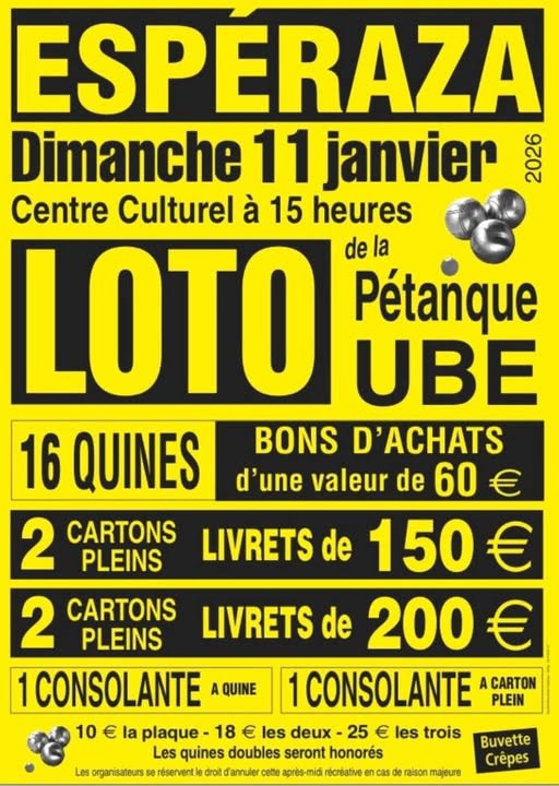 Grand loto à Espéraza le 11 janvier de admin | 11 janvier, 2016 - 21h12 |11 janvier, 2026 Archives Veuillez laisser ce champ vide Inscrivez-vous pour recevoir la lettre hebdomadaire(envoi chaque début de semaine)des infos en Haute Vallée de l'Aude Vérifiez votre boite de réception ou votre répertoire d’indésirables pour confirmer votre abonnement. Pour marque-pages : Permalien.