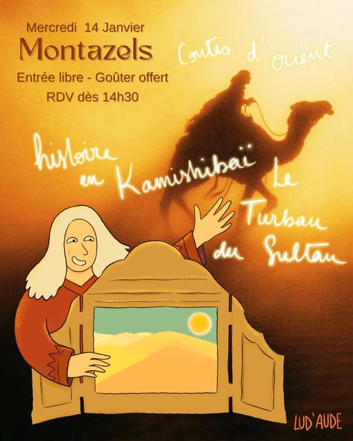 En ce début d’année, Lud’Aude vous propose de venir mercredi 14 Janvier sur notre temps d’accueil, écouter la lecture du « Turban du Sultan » en Kamishibaï . 🐪🌵Venez profiter de la chaleur du désert, célébrer les derniers instants du thème et vous accorder une pause contée dans les coussins moelleux de la Ludo ! Pour l’occasion un goûter sera offert 🥞🍧🫖!