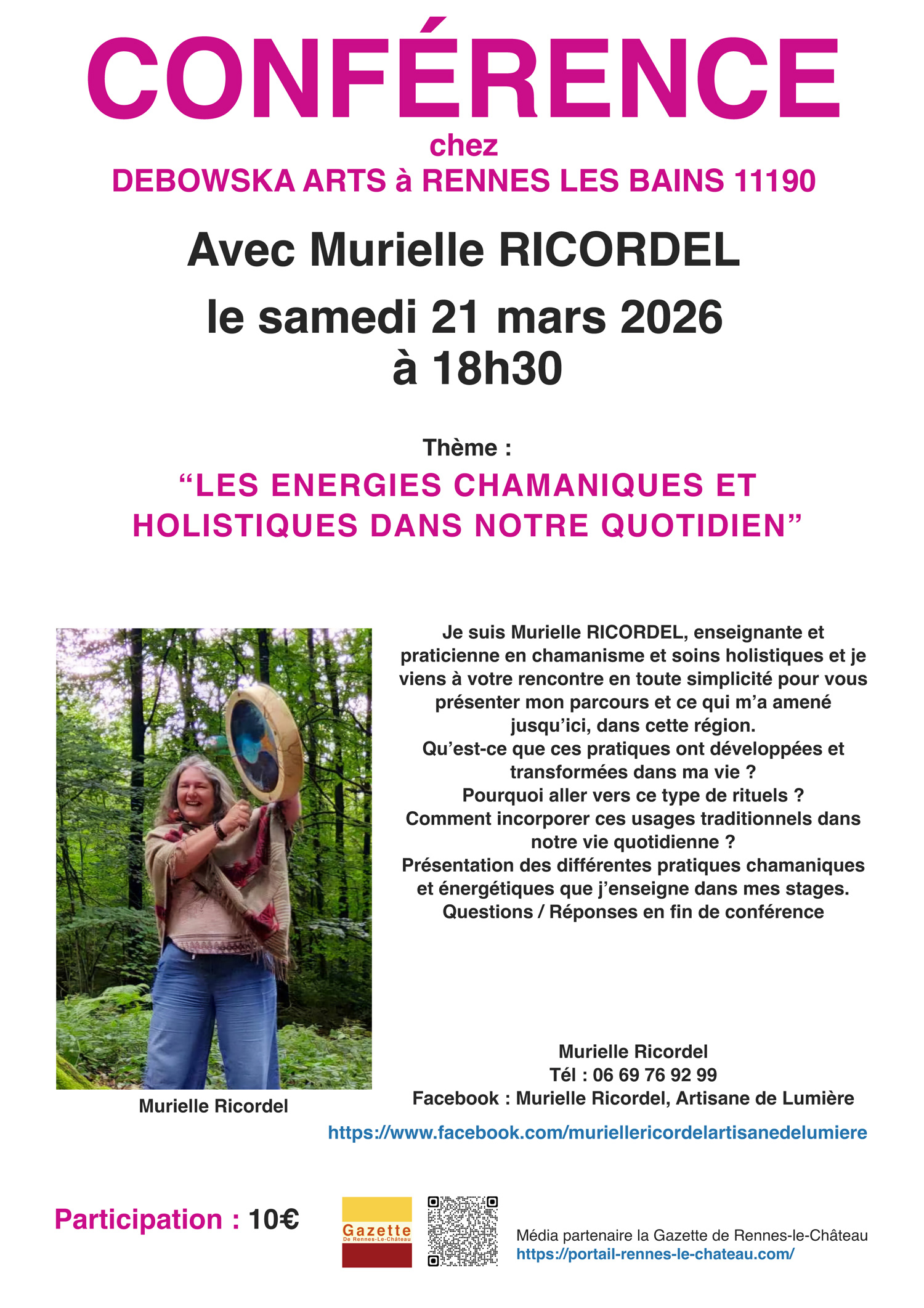 Les énergies chamaniques et holistiques avec Murielle RIcordel chez Debowsa le 21 mars à Rennes les bains