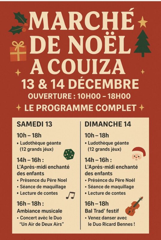 Marché de Noël à Couiza le 13 & 14 décembre