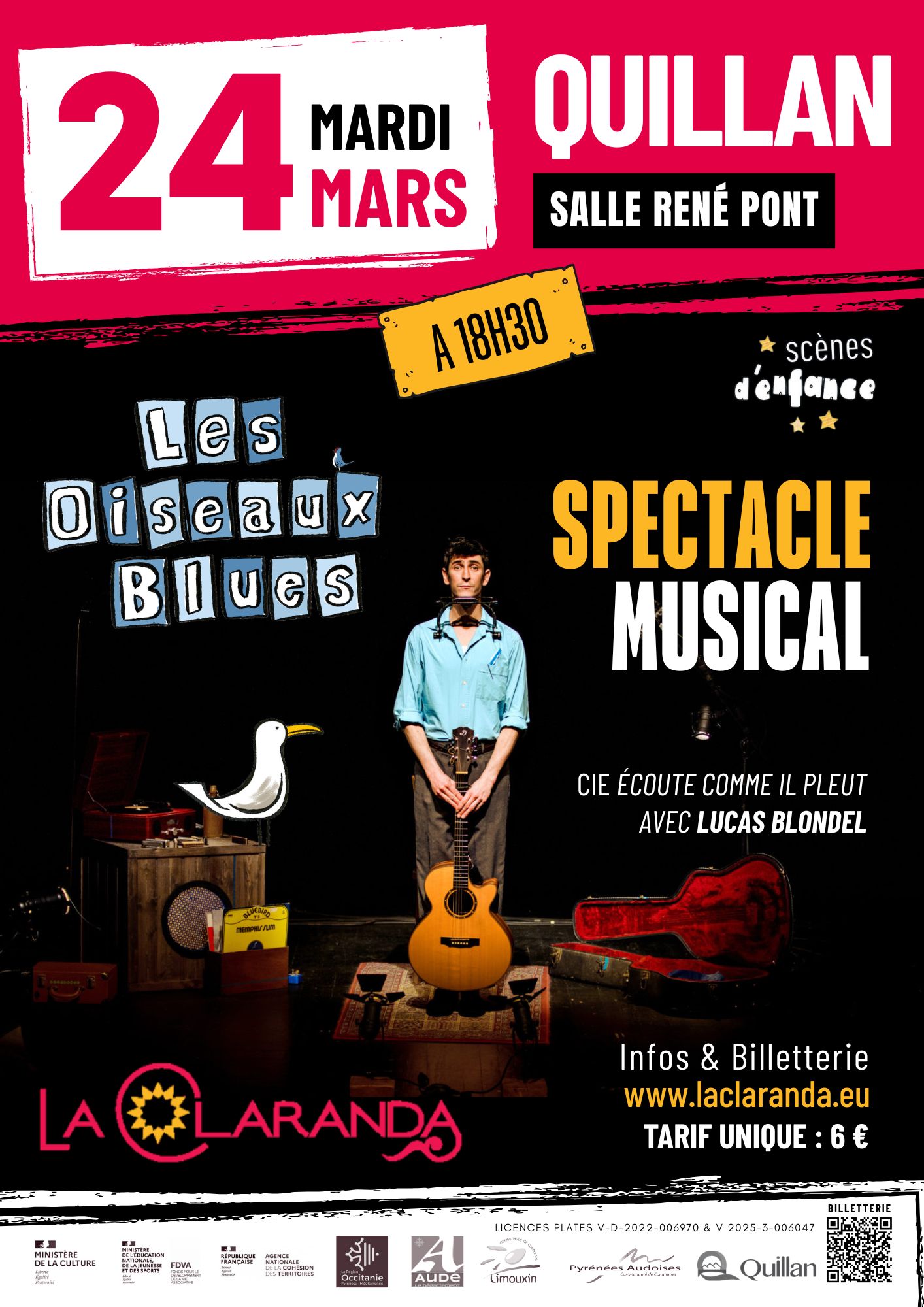 La Claranda vous donne rendez-vous mardi 24 mars Ă 18h30 pour Les Oiseaux Blues, un spectacle musical tout public dès 8 ans, proposĂ© dans le cadre du Festival Scènes d’Enfance du Conseil DĂ©partemental de l’Aude.Â