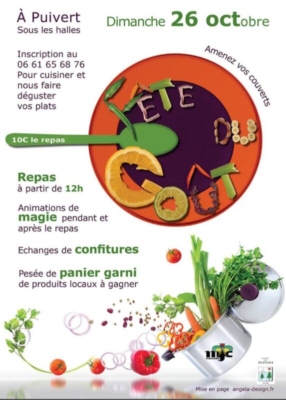 Fête du goût à Puivert le 26 octobre de admin | 26 octobre, 2015 - 14h00 |27 octobre, 2025 Archives Veuillez laisser ce champ vide Inscrivez-vous pour recevoir la lettre hebdomadaire(envoi chaque début de semaine)des infos en Haute Vallée de l'Aude Vérifiez votre boite de réception ou votre répertoire d’indésirables pour confirmer votre abonnement. Pour marque-pages : Permalien.