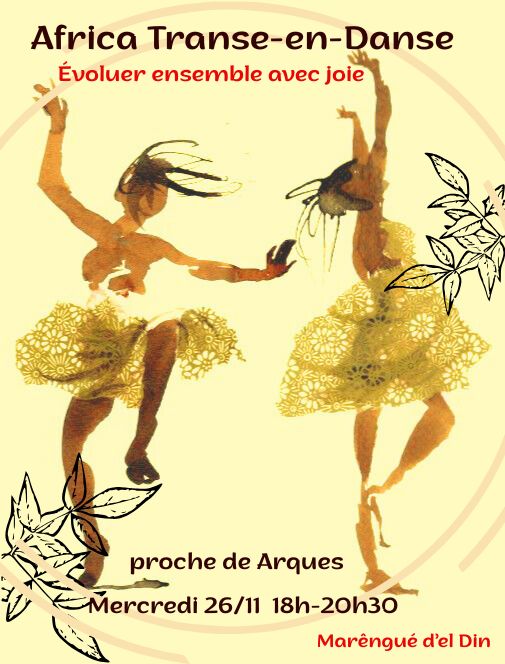 Bienvenu-e ce MERCREDI 26 à 18h, proche de Arques, pour danser librement 🕺🏿sur une🪘playlist de musiques africaines 🌍 appelant la transe✨pour laisser aller ce que 🍂 ta nouvelle vie🌈 ne veut plus, afin d’œuvrer à ta pleine réalisation 💎 !
