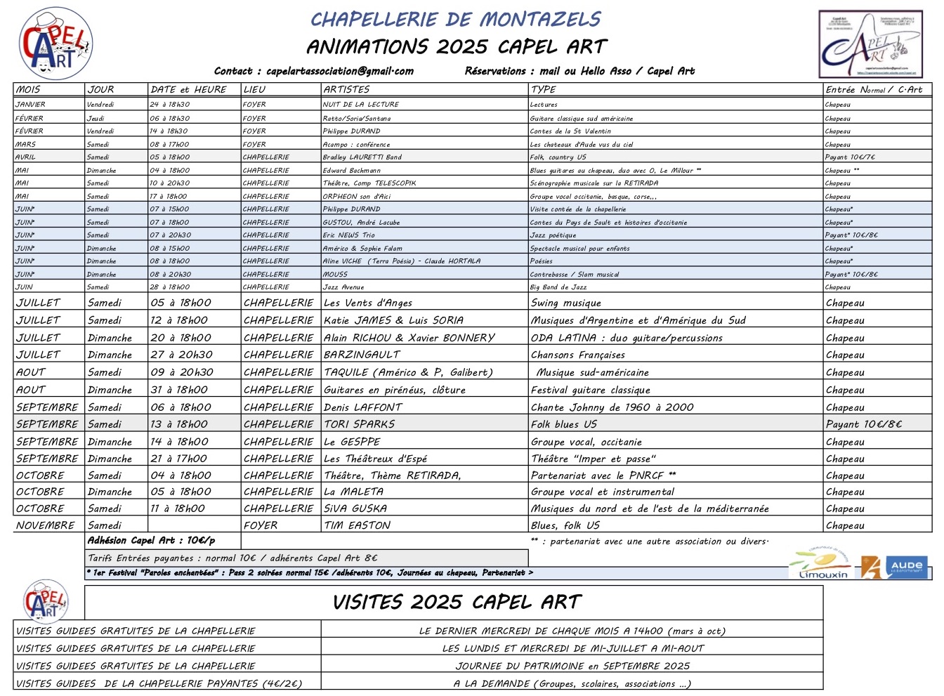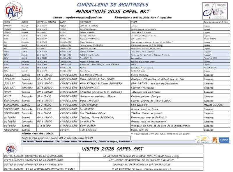 Programme de Capel Art à Montazels jusqu’en octobre 2025