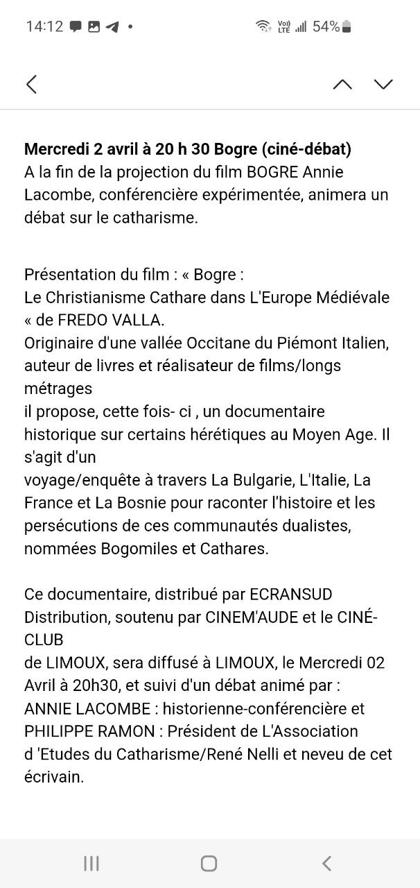 Projection du film « Bogre » à Limoux le 2 avril de admin | 2 avril, 2015 - 20h19 |6 avril, 2025 Archives Veuillez laisser ce champ vide Inscrivez-vous pour recevoir la lettre hebdomadaire(envoi chaque début de semaine)des infos en Haute Vallée de l'Aude Vérifiez votre boite de réception ou votre répertoire d’indésirables pour confirmer votre abonnement. Pour marque-pages : Permalien.