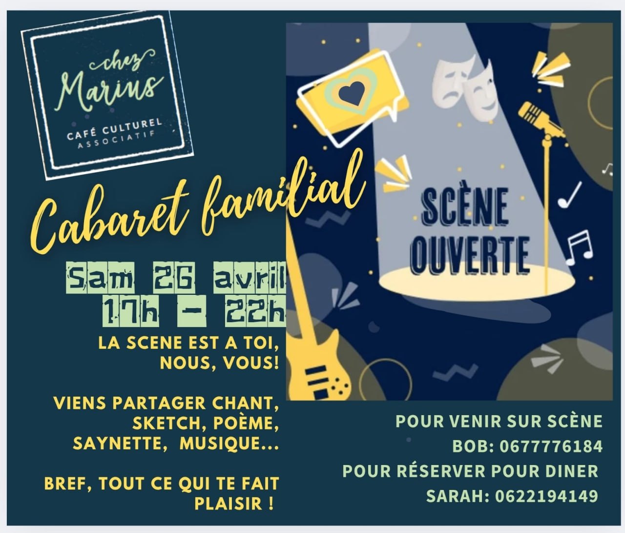 Samedi 26 Avril scène ouverte chez Marius ! à Puivert