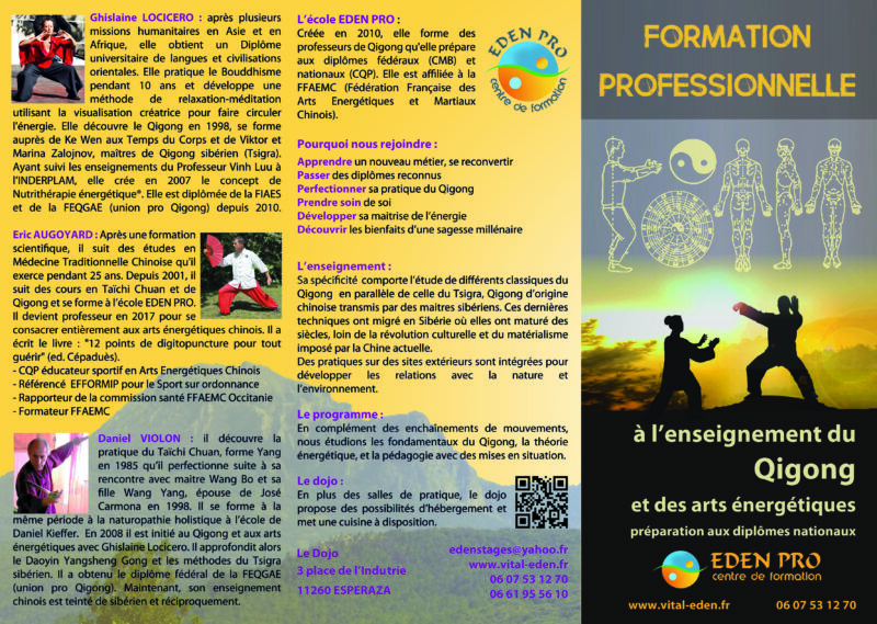 www.vital-eden.fr – Renseignements : 06 61 95 56 10 – 06 07 53 12 70 Hébergements possibles au Dojo : 09 54 59 38 15 |