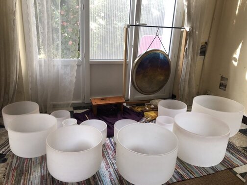 empowering the re-greening of our Earth. My 13 quartz crystal singing bowls and Golden rainbow