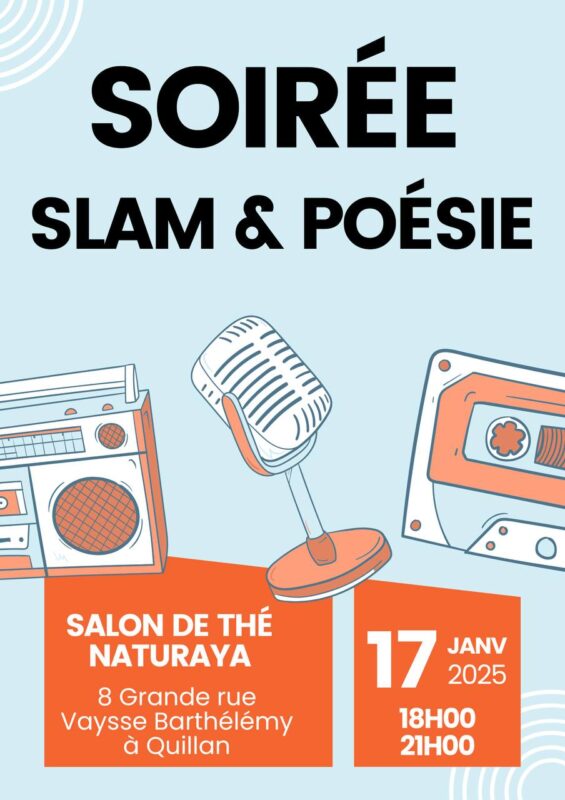 Rejoins-nous au salon de thé Naturaya pour cette soirée slam & poésie pour faire vibrer les mots et les cœurs. 🌸