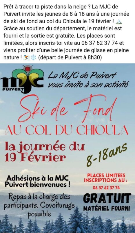 Sortie ski de fond au Chioula le 19 février avec la MJC de Puivert
