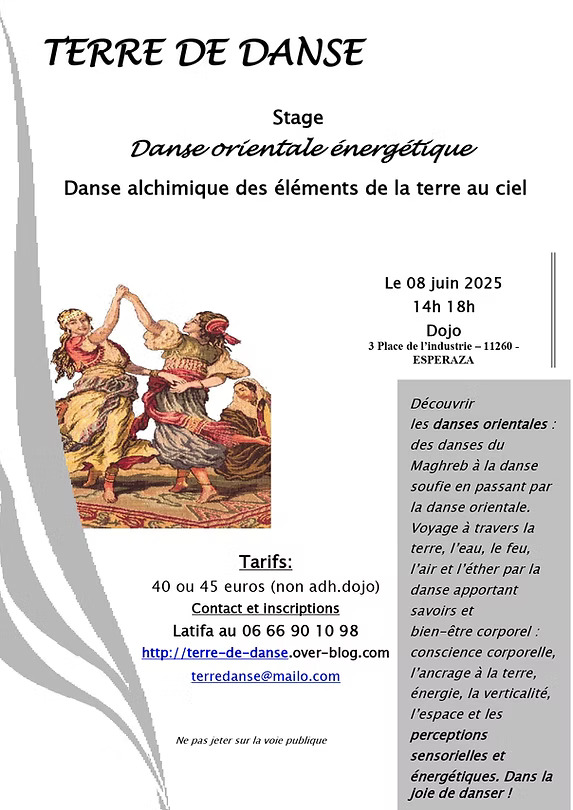 Stage de Danse orientale énergétique au dojo d’Espéraza dimanche 8 Juin