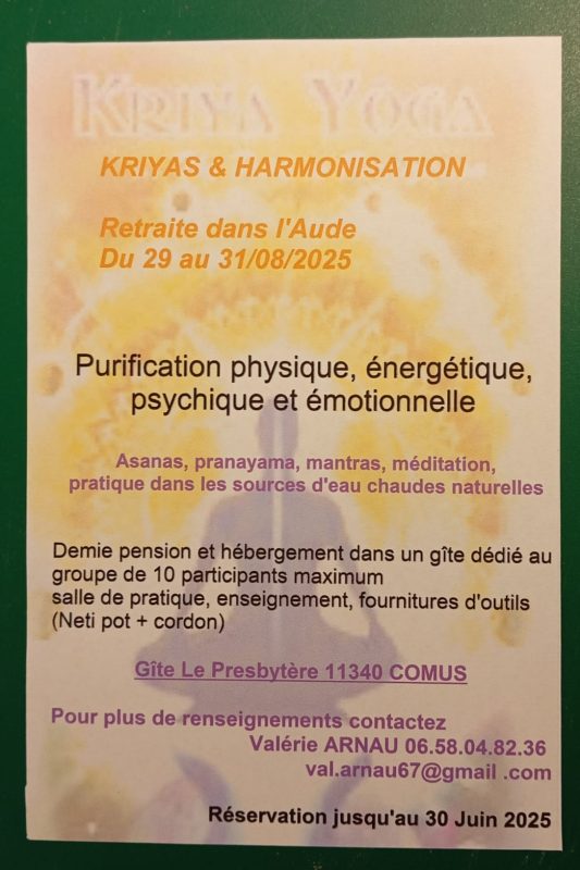 Stage yoga du 29 au 31 août à Comus de admin | 29 août, 2015 - 10h35 |30 août, 2025 Archives Veuillez laisser ce champ vide Inscrivez-vous pour recevoir la lettre hebdomadaire(envoi chaque début de semaine)des infos en Haute Vallée de l'Aude Vérifiez votre boite de réception ou votre répertoire d’indésirables pour confirmer votre abonnement. Pour marque-pages : Permalien.