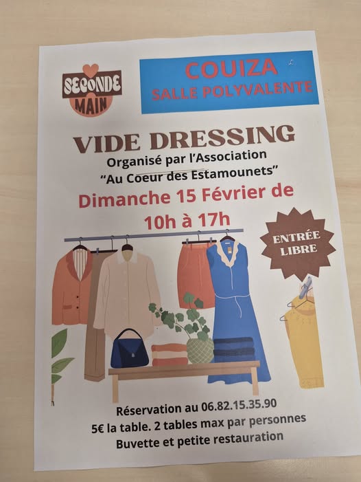 Vide dressing à Couiza le 15 février de admin | 15 février, 2016 - 13h52 |16 février, 2026 Archives Veuillez laisser ce champ vide Inscrivez-vous pour recevoir la lettre hebdomadaire(envoi chaque début de semaine)des infos en Haute Vallée de l'Aude Vérifiez votre boite de réception ou votre répertoire d’indésirables pour confirmer votre abonnement. Pour marque-pages : Permalien.